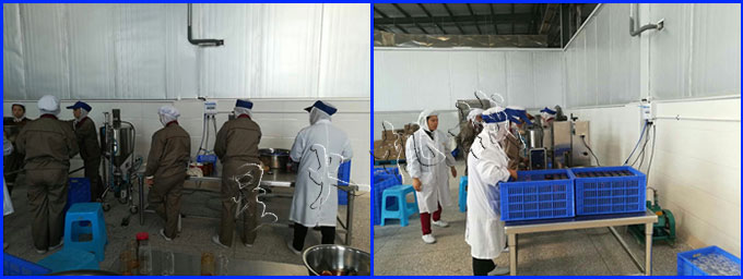 四川錦膳食品有限公司生產(chǎn)車間-燃面辣椒醬灌裝機-麻辣牛肉醬灌裝機-應(yīng)用現(xiàn)場